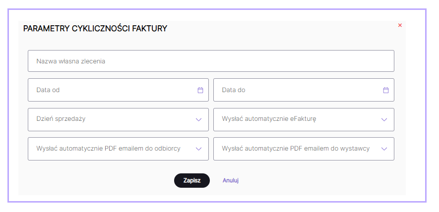 Faktury cykliczne - definiowanie