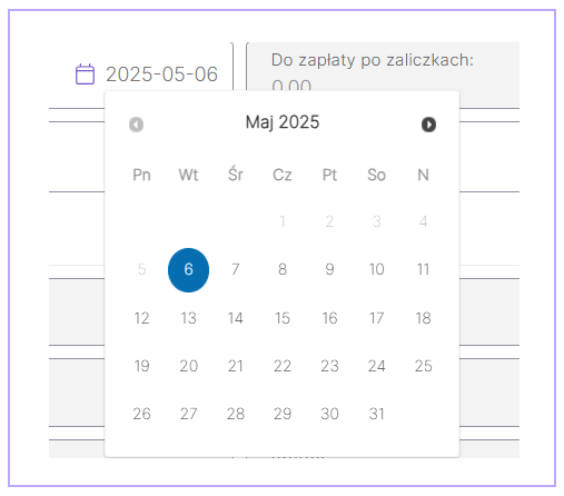 Jeśli termin płatności ma być inny niż ten z listy, kliknij ikonę kalendarza i wybierz dowolną datę.
