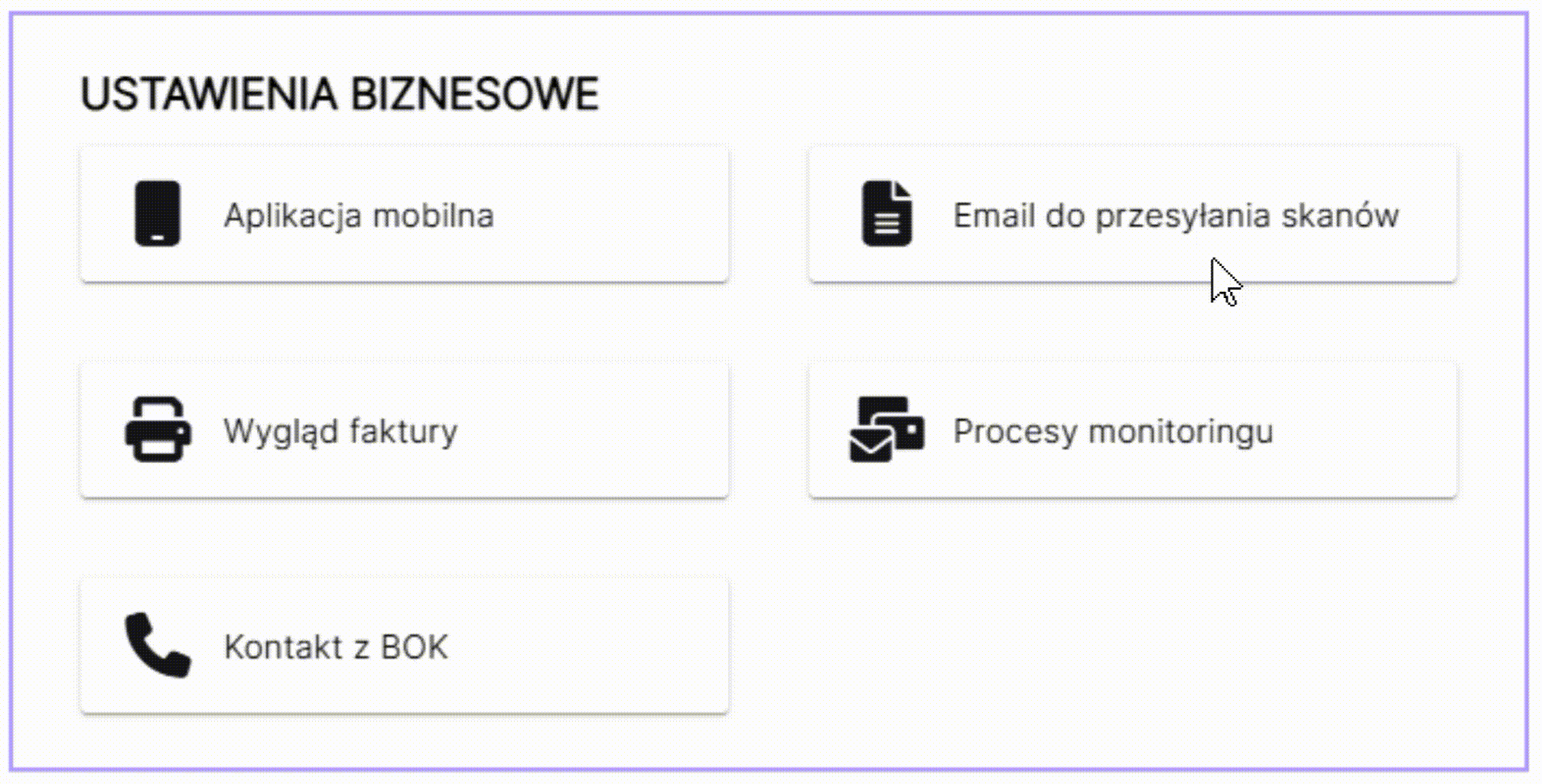 1. Po zalogowaniu do systemu należy przejść do zakładki Ustawienia/Ustawienia biznesowe/Email do przesyłania skanów i utworzyć adres e-mail.