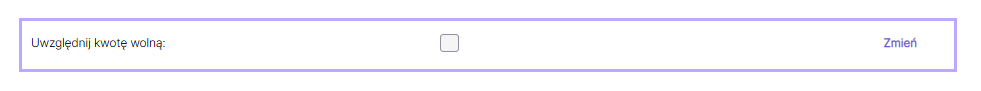 Kwota wolna może być rozliczona w wyliczeniu zaliczki na zasadach ogólnych lub odjęta bezpośrednio od deklaracji rocznej. W celu odliczania składki bezpośrednio od zaliczki należy przejść do zakładki Ustawienia/ Właściciel i przy parametrze Uwzględnij kwotę wolną należy wybrać przycisk Zmień.