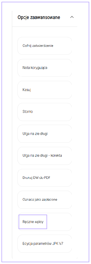 2. Po lewej stronie ekranu rozwinąć Opcje zaawansowane a następnie wybrać Ręczne wpisy.