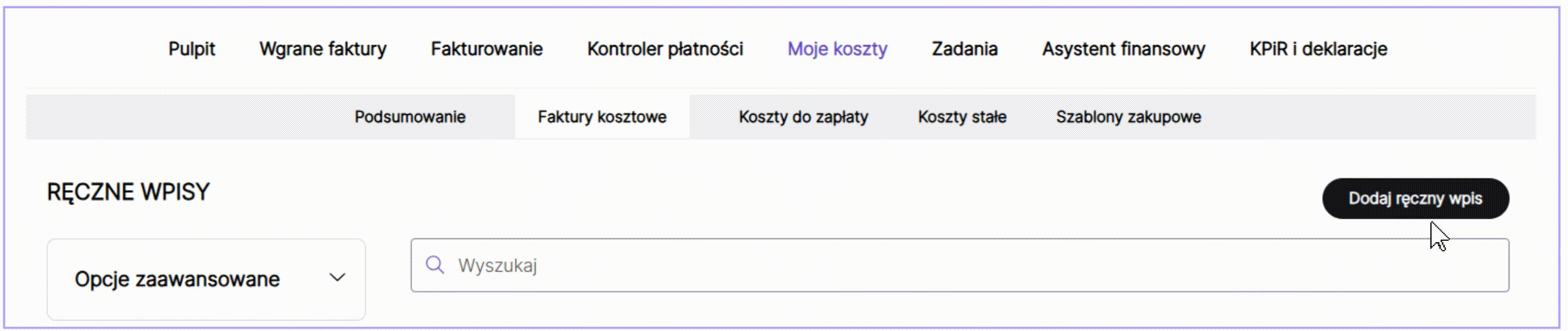 2. Po lewej stronie ekranu rozwinąć Opcje zaawansowane a następnie wybrać Ręczne wpisy.