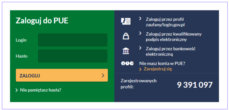 - Zalogować się do PUE;