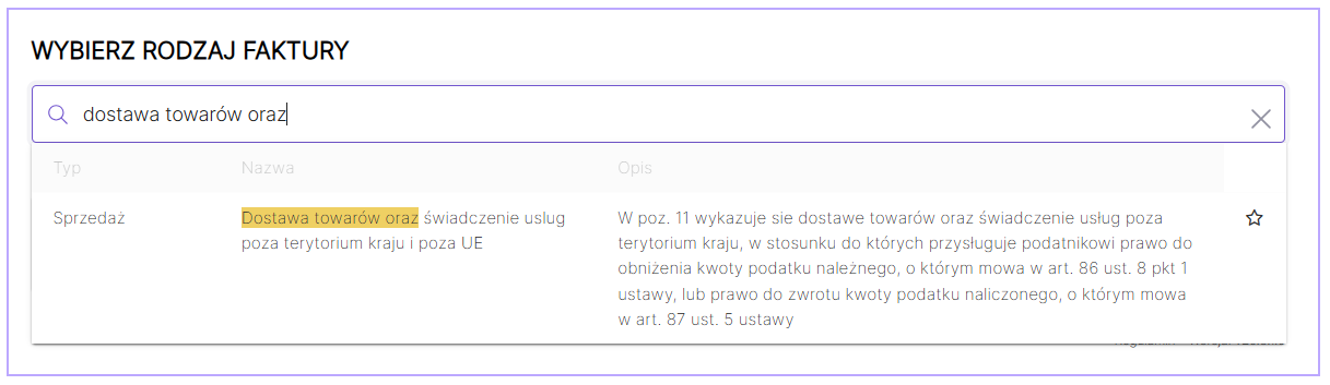 W celu wystawienia faktury związanej z eksportem towarów i usług poza terytorium kraju i poza terytorium Unii Europejskiej należy przejść do zakładki Fakturowanie/Faktury. Następnie po prawej stronie u góry ekranu proszę wybrać Wystaw z szablonu i skorzystać z dostępnego szablonu: Dostawa towarów oraz świadczenie usług poza terytorium kraju i poza UE.