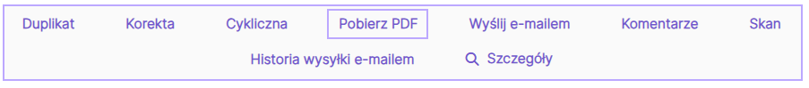 Aby pobrać wystawioną fakturę sprzedaży w formacie PDF, kliknij w pasek dokumentu, a następnie wybierz opcję Pobierz pdf.