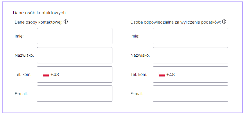Zmianę adresu e-mail do wysyłki faktur, min. za usługi CashDirector należy dokonać w zakładce Ustawienia/Firma w sekcji Dane osób kontaktowych. Po wprowadzeniu właściwego adresu należy zapisać dane przyciskiem Zapisz w lewym dolnym rogu strony: