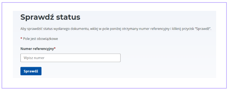 5. Przejść do strony https://klient-eformularz.mf.gov.pl/declaration-client/status i wkleić w polu Numer referencyjny: