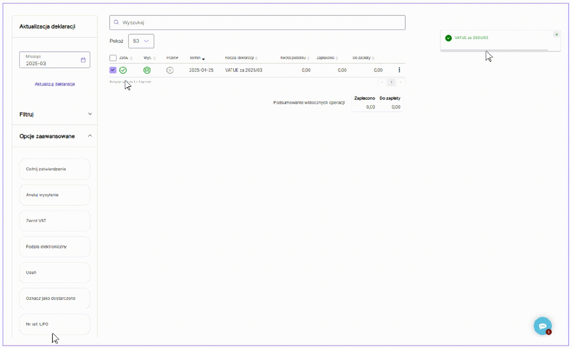 2. Zaznaczyć checkboxem wysłaną deklarację VAT UE;