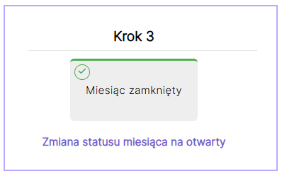 W przypadku konieczności zaksięgowania faktury w miesiącu, który został zamknięty konieczne jest jego otworzenie w zakładce Zamknij miesiąc poprzez wybór funkcji Zmiana statusu miesiąca na otwarty: