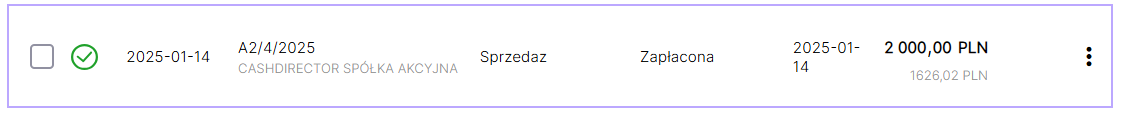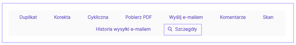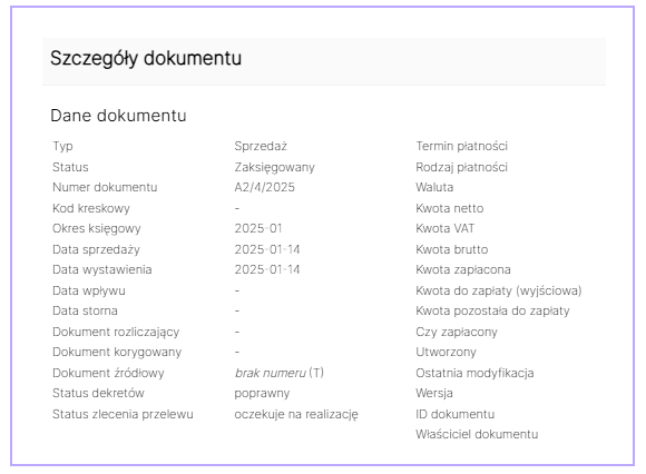 Jeśli faktura pomimo właściwego statusu nadal nie została wykazana w deklaracjach, konieczne jest sprawdzenie, czy podczas wprowadzania dokumentu nie doszło do pomyłki, np. w zapisie dat. W tym celu należy kliknąć w panel i wybrać opcję Szczegóły: