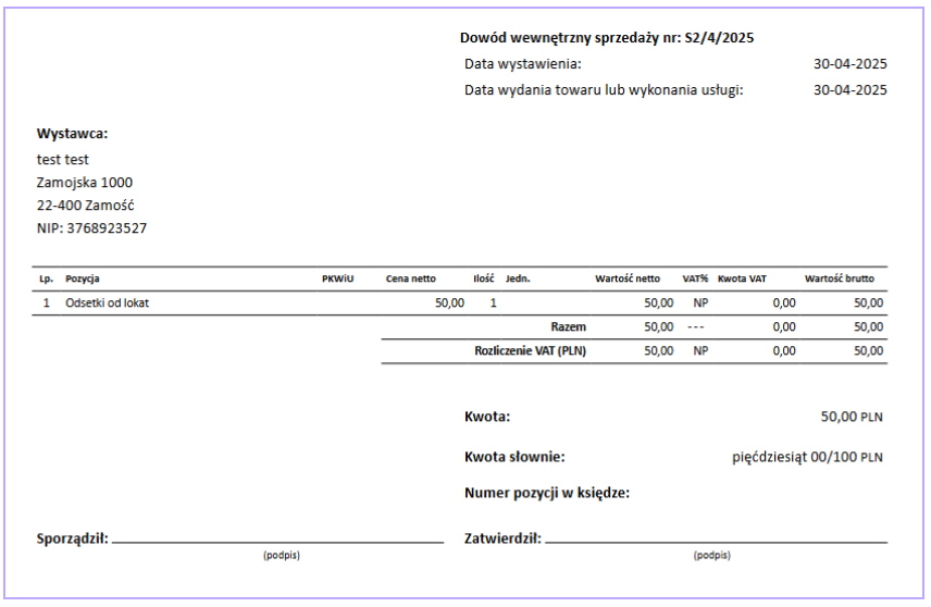 Nota odsetkowa zostanie ujęta w kolumnie 8 KPiR.