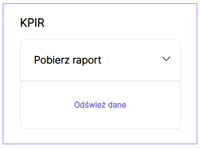 Zestawienie KPiR narastająco od początku roku dostępne jest w zakładce KPiR po wyborze kafelka Pobierz raport: