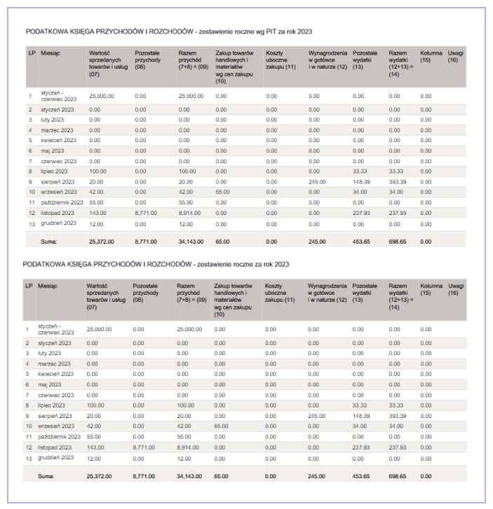 Wydruk będzie zawierać poniższe dane: