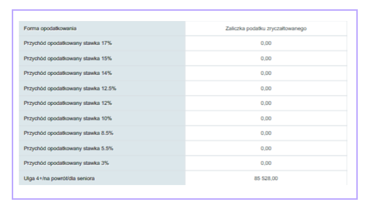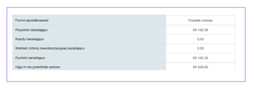Po zaznaczeniu checkboxa, w rozliczeniu podatku dochodowego zostanie uwzględniona ulga w wysokości 85 528 zł