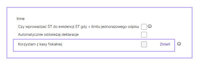 W systemie została udostępniona funkcjonalność ostrzegania klientów o przekroczeniu limitu do kasy fiskalnej. Limit wynosi 20 000 zł na rok i jest liczony proporcjonalnie od daty sprzedaży na pierwszej fakturze dla osoby fizycznej lub płatności (w zależności co było wcześniejsze) dla osoby fizycznej. W momencie wystawienia faktury sprzedaży lub po jej wystawieniu, gdy na dokumencie zostanie wskazana forma płatności gotówka i wystawienie tej faktury będzie oznaczało przekroczenie limitu, do użytkownika zostanie wysłany mail informujący o przekroczeniu limitu do kasy fiskalnej. W celu wyłączenie funkcjonalności związanej z obliczaniem limitu do kasy fiskalnej należy przejść do zakładki Ustawienia/Firma i w sekwencji Inne uzupełnić parametr Korzystam z kasy fiskalnej.