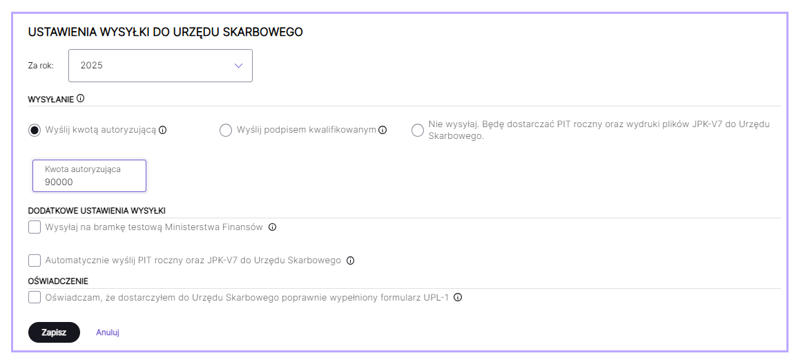 Wysyłanie deklaracji za pomocą kwoty do autoryzacji