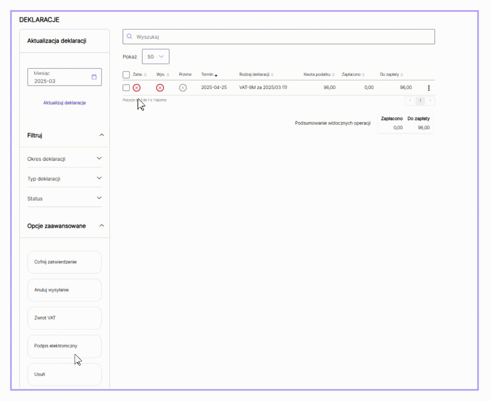 Wysyłka deklaracji VATUE/VAT-9M za pomocą podpisu elektronicznego