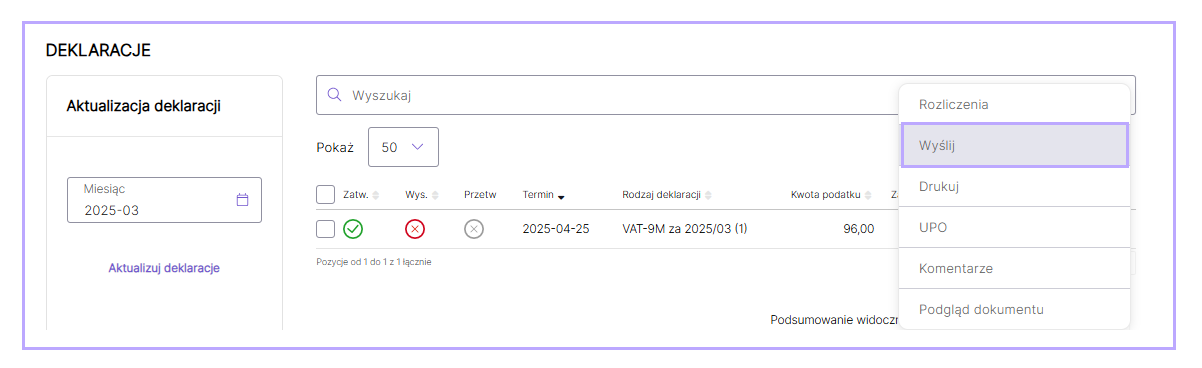 1. Przejść do zakładki KPiR i deklaracje/Deklaracje