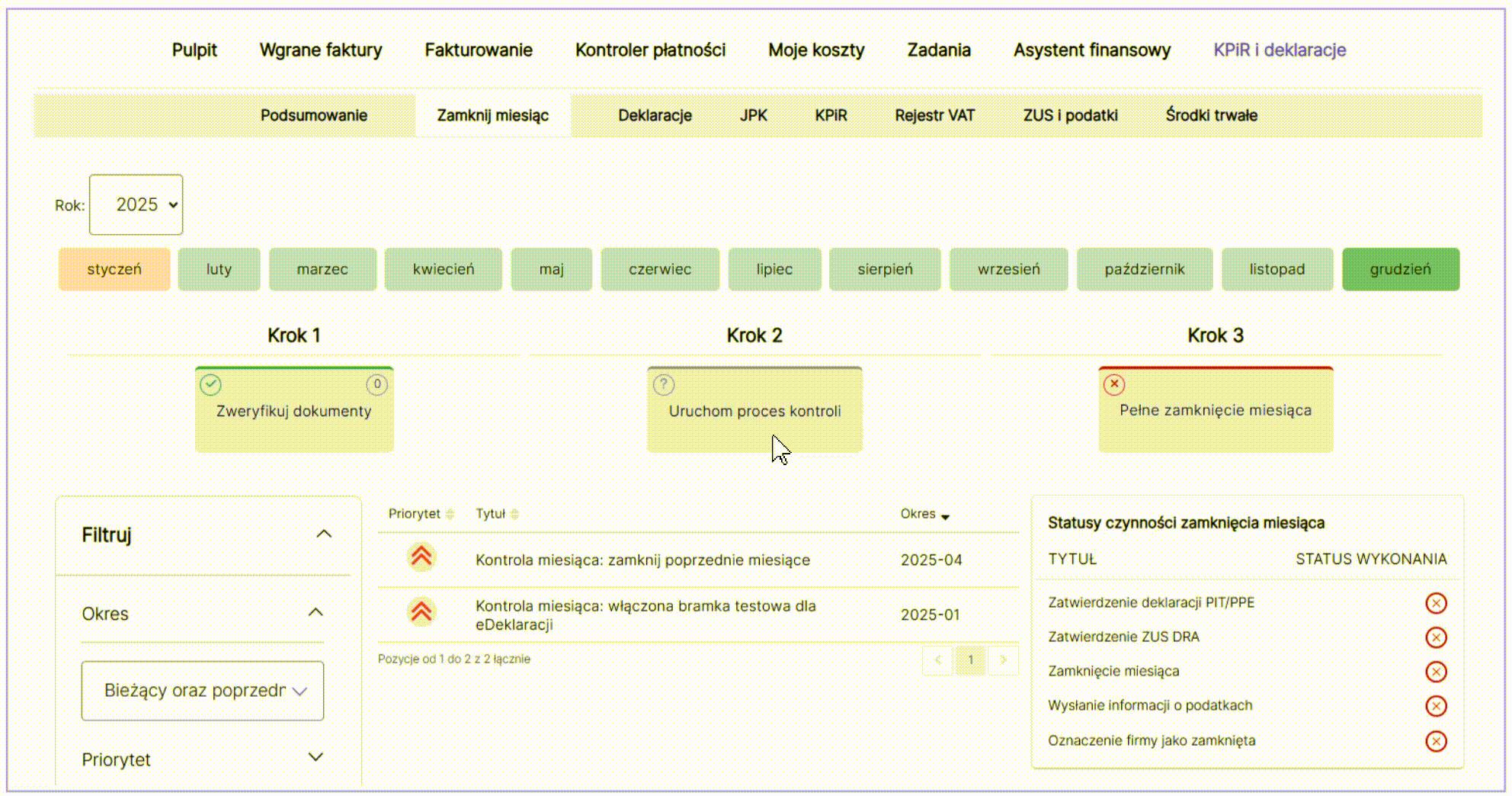 Plik należy wygenerować w zakładce KPiR i deklaracje/Zamknij miesiąc poprzez uruchomienie procesu kontroli dla danego miesiąca.