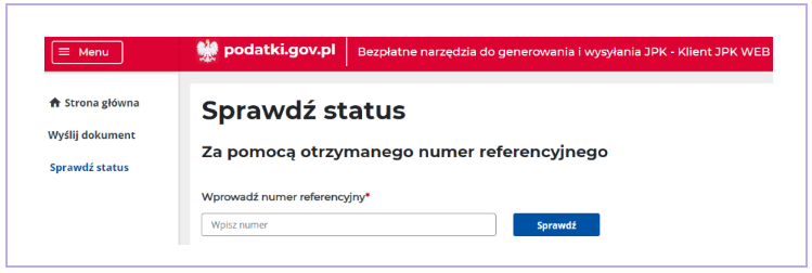 Status wysyłki pliku JPK można zweryfikować na stornie e-mikrofirma.mf.gov.pl.