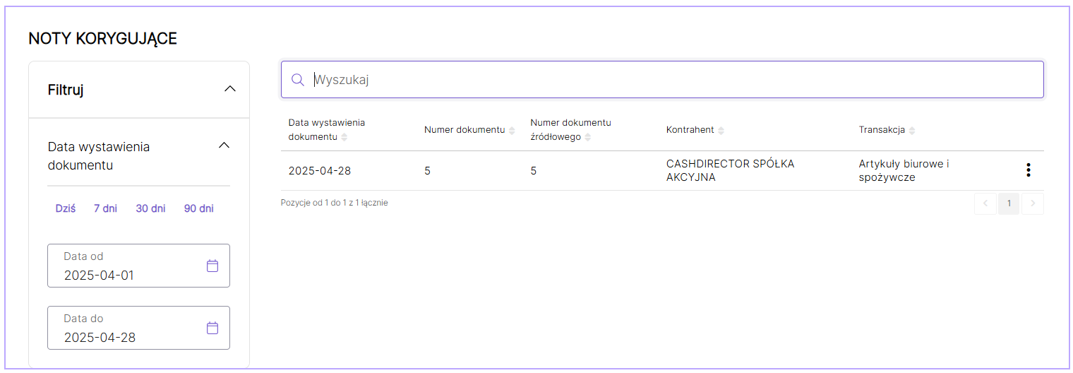 W systemie Obsługa faktur istnieje możliwość wyszukania dodanych not na podstawie daty wystawienia dokumentu: