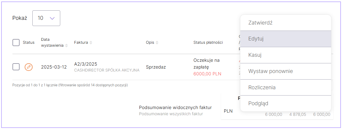Po odksięgowaniu faktury wybierz przycisk Edytuj: