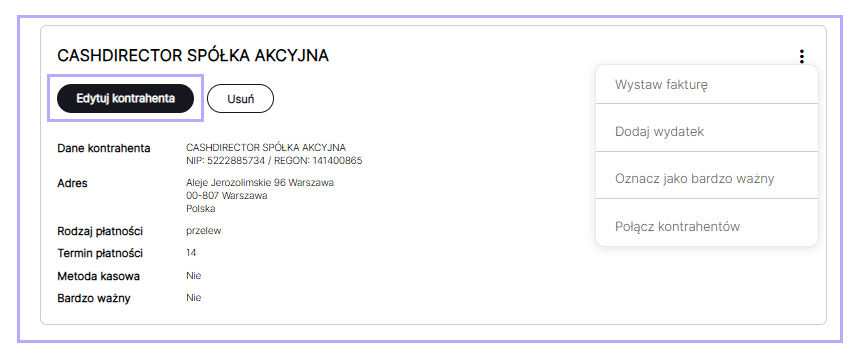 Aby dokonać edycji wprowadzonego wcześniej kontrahenta należy:
