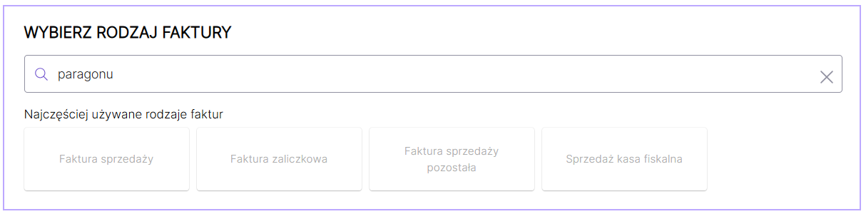 Następnie w prawym górnym rogu ekranu kliknij przycisk Wystaw z szablonu i na liście dostępnych szablonów wybierz Faktura sprzedaży do paragonu VAT (bez KPiR, bez rej. VAT) – FP.