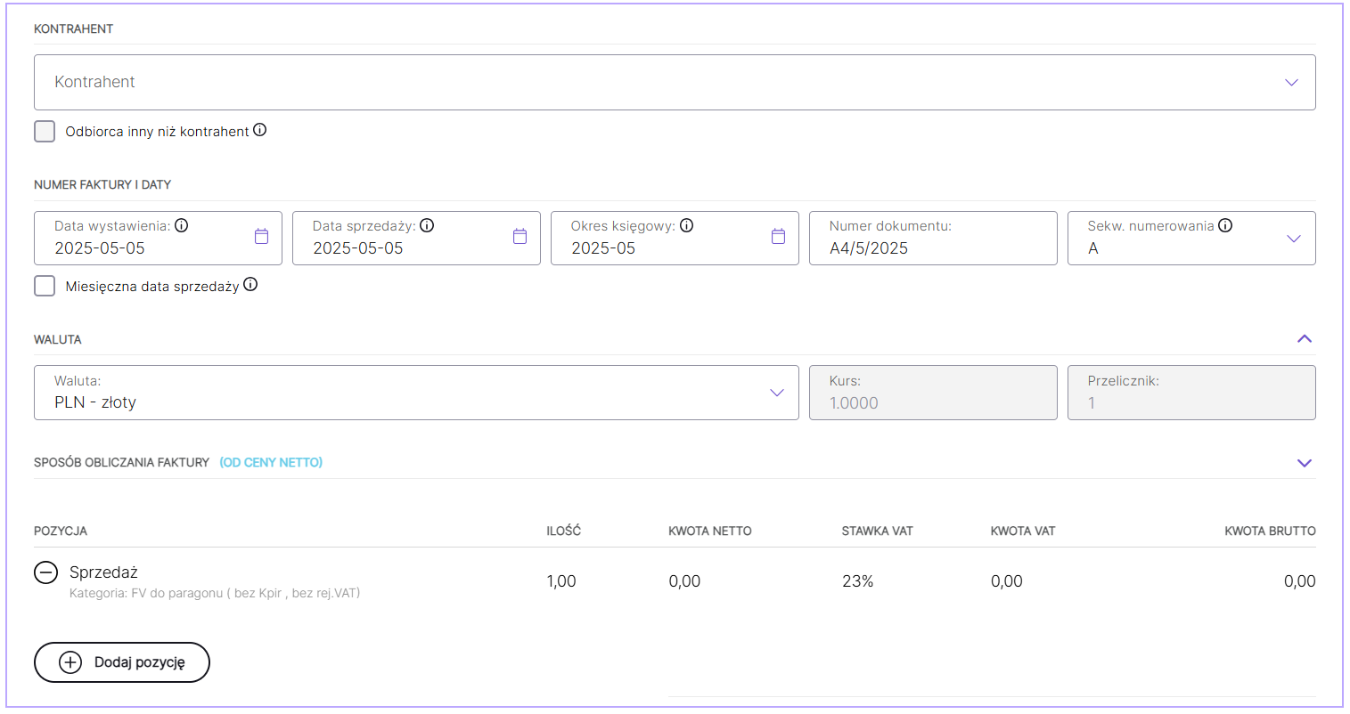 W celu wystawienia faktury do paragonu przejdź do zakładki Fakturowanie/Faktury.
