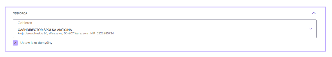 W celu przypisania odbiorcy do danego kontrahenta należy zaznaczyć opcję Ustaw jako domyślny:
