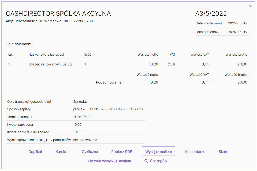 W zakładce Fakturowanie/Faktury możesz wysłać wystawioną fakturę sprzedaży maksymalnie do 5 osób w jednym e-mailu. Faktura zostanie wysłana do wszystkich odbiorców w polu UDW (ukryte do wiadomości).