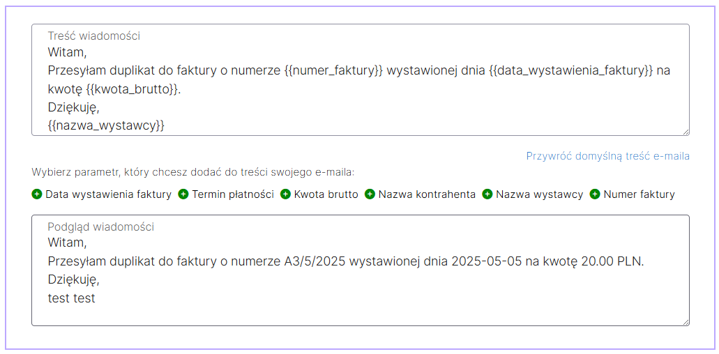 Treść e-maila jest widoczna w podglądzie wiadomości. Przed wysłaniem możesz ją zweryfikować.