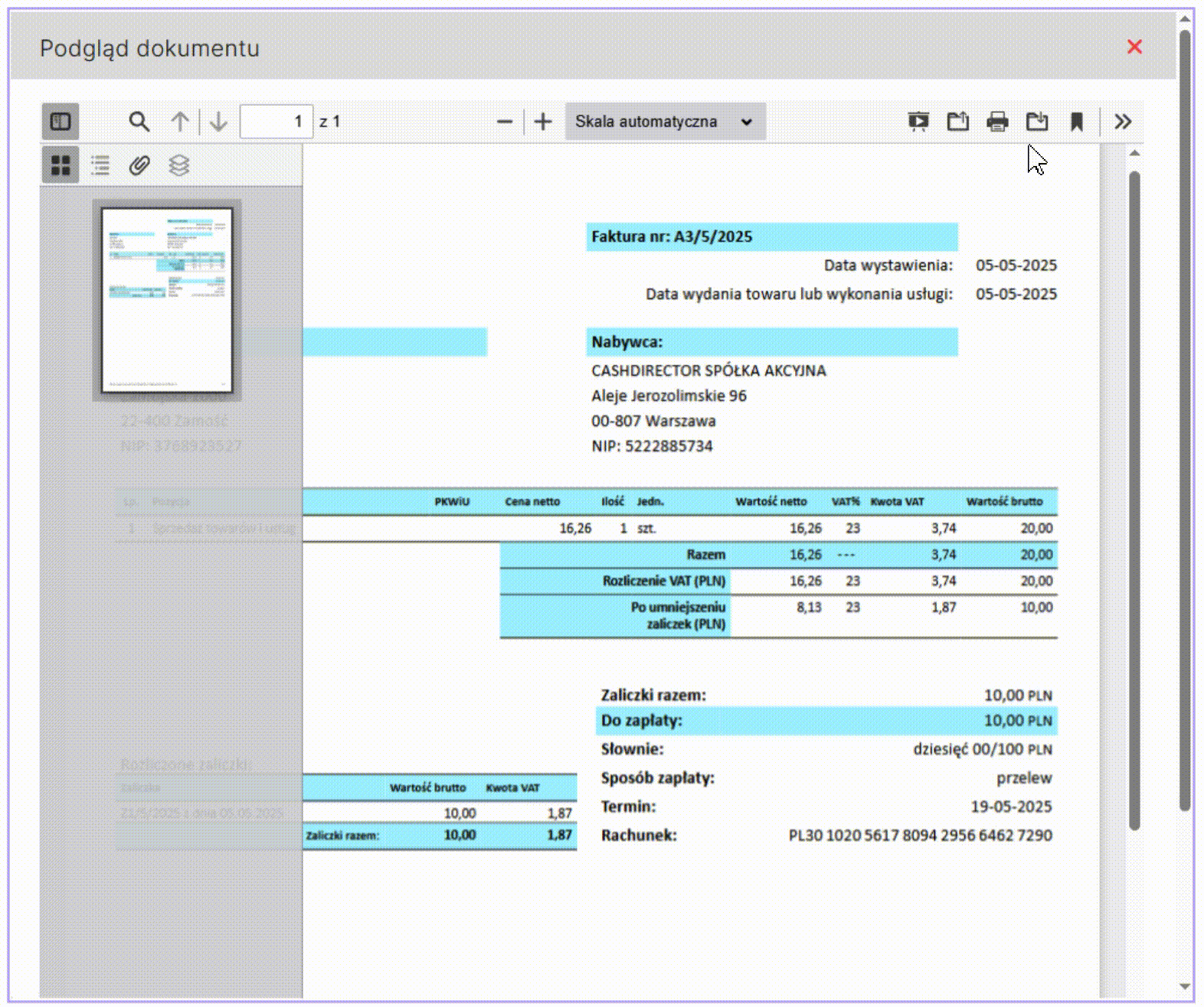 Z poziomu podglądu możesz także pobrać dokument, klikając ikonę folderu.
