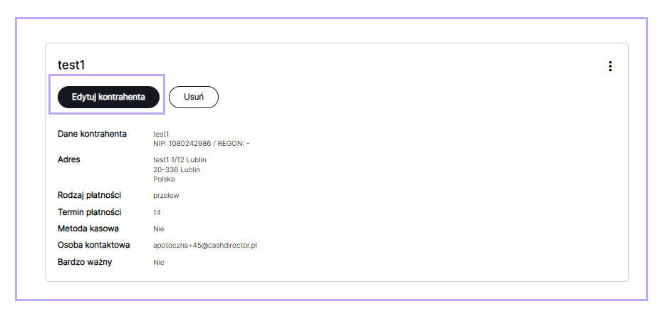 Aby uzupełnić numer rachunku należy przejść do zakładki Fakturowanie/Kontrahenci i po odnalezieniu kontrahenta edytować dane.