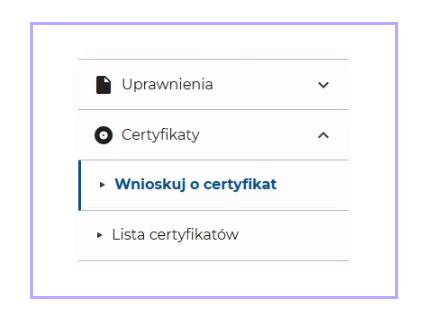 - Kliknij zakładkę Wnioskuj o certyfikat.