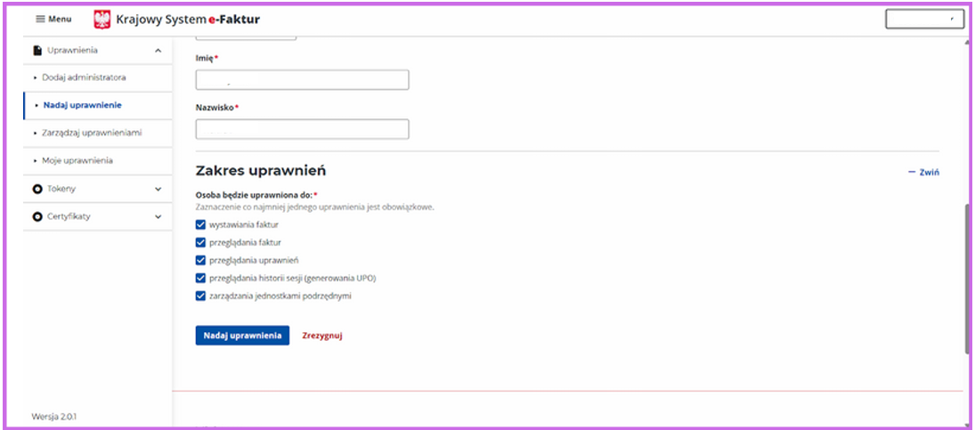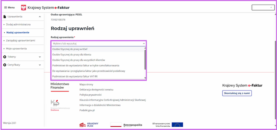 - Osobie fizycznej do pracy w KSeF - podstawowe uprawnienie do pracy w Krajowym Systemie e-Faktur