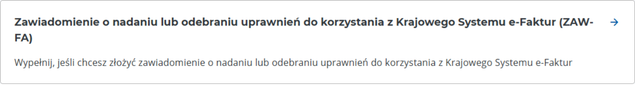 Po załadowaniu strony odnajdź dokument Zawiadomienie o nadaniu lub odebraniu uprawnień do korzystania z Krajowego Systemu e-Faktur (ZAW-FA)