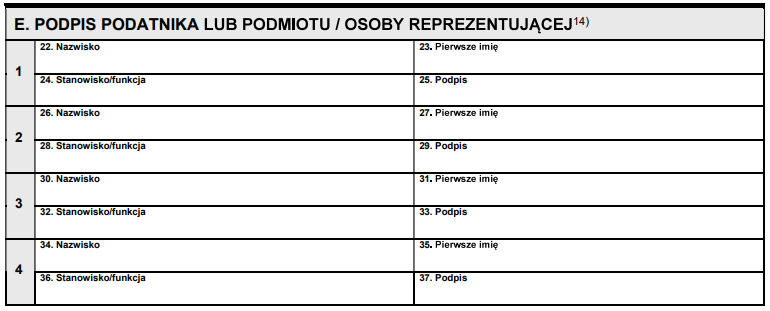 - "zgłoszenie danych unikalnych identyfikujących kwalifikowany podpis elektroniczny podatnika" - części C formularza nie należy uzupełniać.