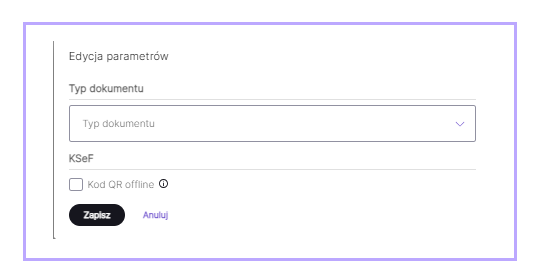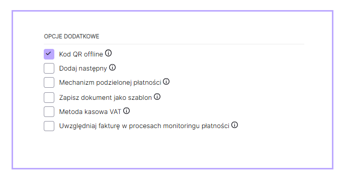 Pole to może zostać zaznaczone automatycznie na podstawie odczytu wizualizacji faktury. Jeżeli system wykryje na dokumencie kod QR offline, parametr zostanie zaznaczony automatycznie. Użytkownik może również zmienić jego stan ręcznie.